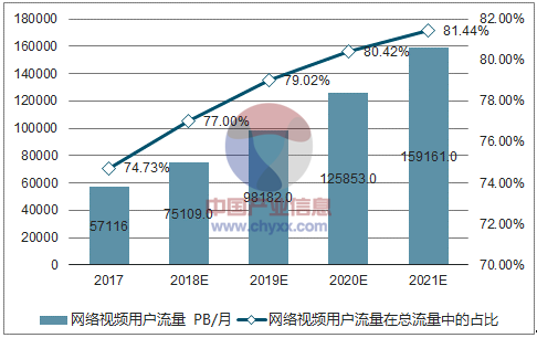 2017-2021年(nián)全球網絡視(shì)頻(pín)用(yòng)戶流量